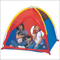 This roomy little play tent is designed for indoor and outdoor use, is durable, washable and set up in a snap. It comes with a carry bag and even survived a little (oops) thunderstorm last night. It's drying out on our deck today... It's a nice little getaway/space for Daniel in our condo, and even fits out on our deck. I wish I'd thought of it sooner!